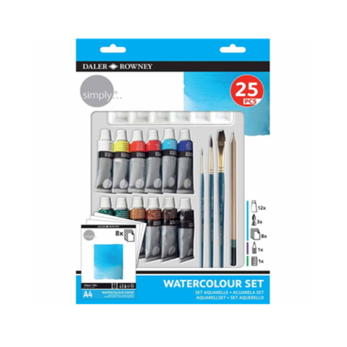 • CONTEÚDO: 12 tubos de tinta aguarela 12ml (12 cores) 3 pincéis para pintura 8 fls papel para tinta acrílica 1 lápis para esboços 1 paleta para misturas