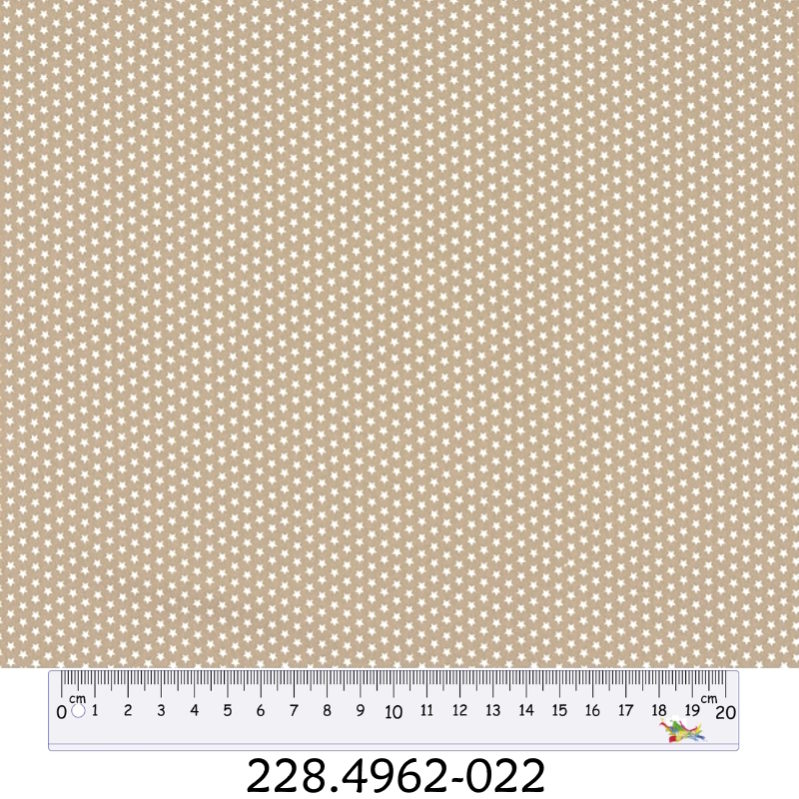Tecido 100% Algodão Estrelas Bege Fundo Branco 1,40Mts.