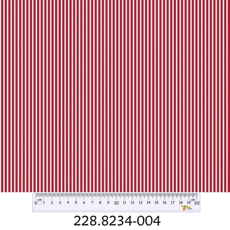 Tecido Algodão Riscas Branco / Vermelho 1,40Mts.