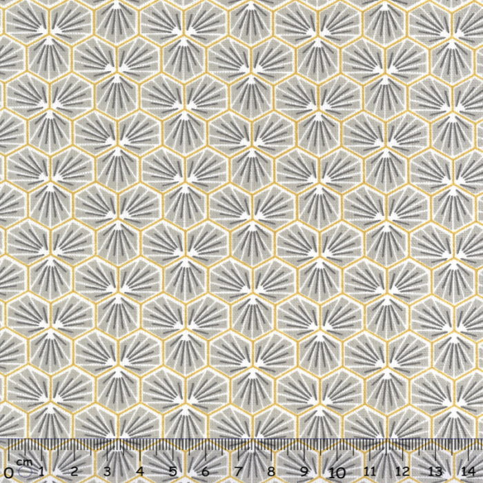 Tecido 100% Algodão Circulos e Quadrados Ouro