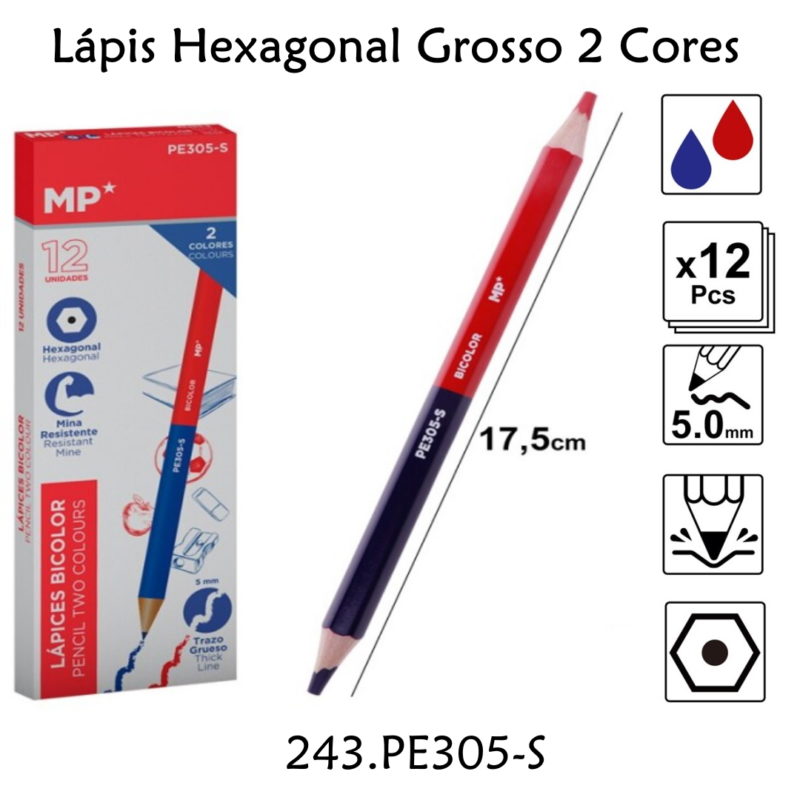 / Lápis Hexagonal Grosso 2 Cores Cx.12un.