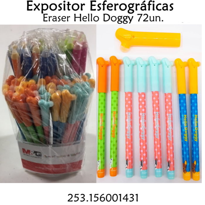 / Expositor Esferográficas Eraser Hello Doggy 72un.